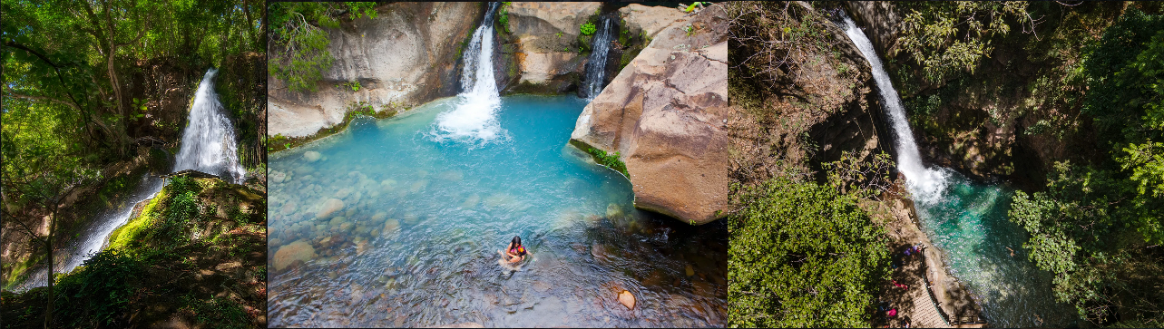 waterfall. I had been here a decade ago, and it was as beautiful as I remembered. There were several pools downstream. One of them was good for swimming. Another held a seven foot long crocodile. He was in a pool upstream from us, and Jacob assured us that it was okay. The guides apparently knew this fellow. So we took a nervous quick dip (it was hot and humid, we really wanted to cool o